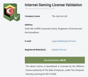 Betplay, Anjouan Eyaleti Offshore Finans Otoritesi tarafından verilen resmi lisans kapsamında faaliyet göstermektedir. Platformdaki tüm işlemler lisans denetimleriyle güvence altına alınır ve kullanıcı fonları koruma altında tutulur. Bu sayede üyeler, güvenli bir ortamda kesintisiz ve keyifli oyun deneyimi yaşayabilir.